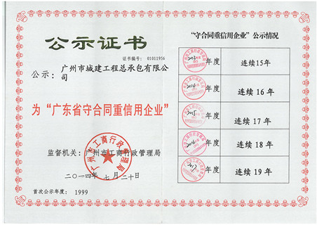 日前,在廣州市工商行政管理局開展的守合同重信用評(píng)選活動(dòng)中,公司連續(xù)19年(1999—2017年)獲得“廣東省守合同重信用企業(yè)”榮譽(yù)。