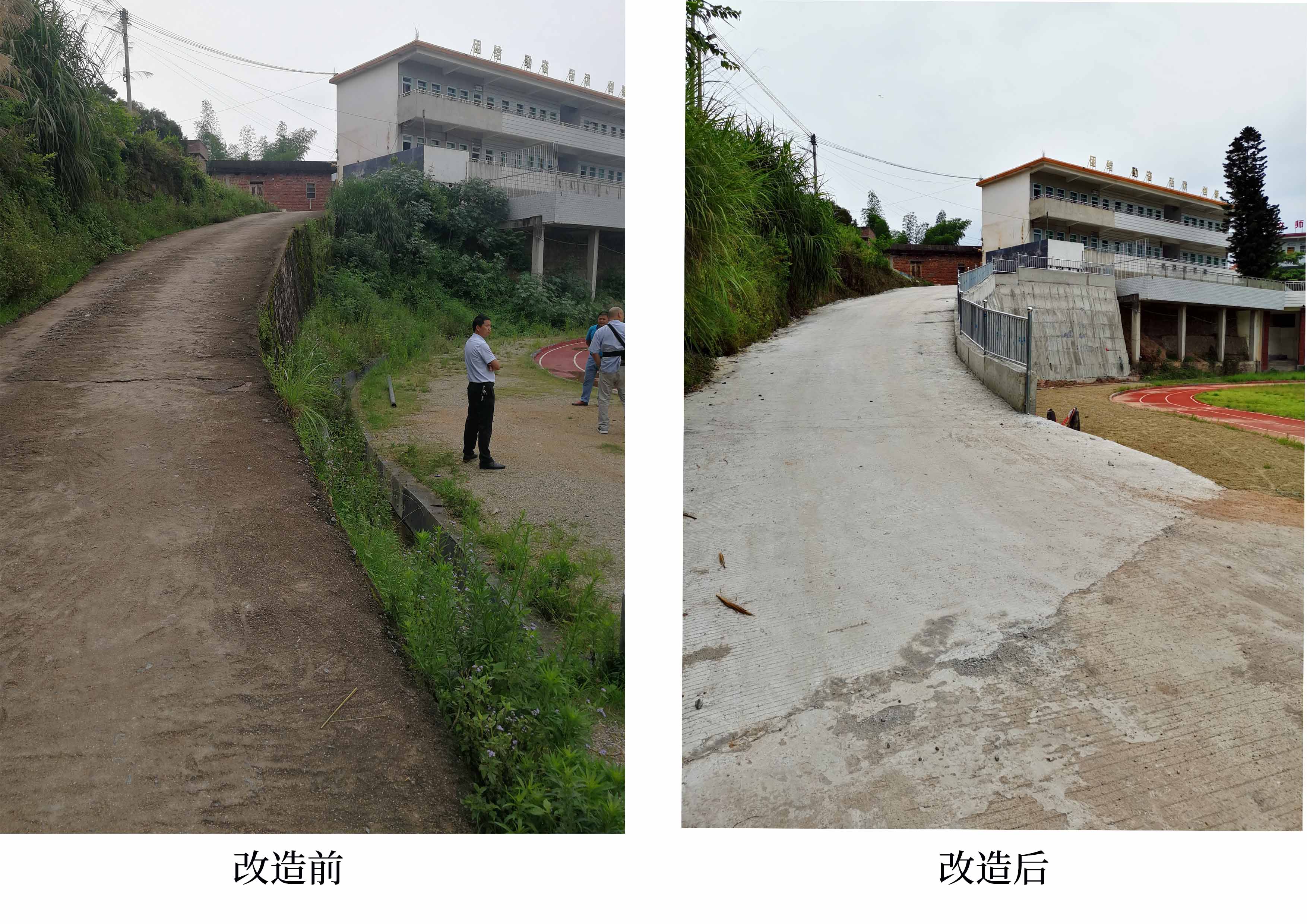黎塘村小學(xué)旁的坡道改造項(xiàng)目是局對口幫扶黎塘村的重要一環(huán),我公司負(fù)責(zé)具體建設(shè)工作。該坡道是黎塘村中小學(xué)生和村委附近村民的主要生活道路,但由于年久失修,坡陡路窄,沒有防護(hù)措施,存在一定的交通不便及安全隱患。為解決交通和風(fēng)險(xiǎn)問題,積極響應(yīng)習(xí)近平總書記“不忘初心、牢記使命”主題教育精神,我局下決心盡快進(jìn)行幫扶解決。在局和院領(lǐng)導(dǎo)的關(guān)心和支持下,我公司充分發(fā)揮自身工程管理的專業(yè)優(yōu)勢,經(jīng)過一個(gè)多月的努力,順利完成坡道的改造任務(wù)。