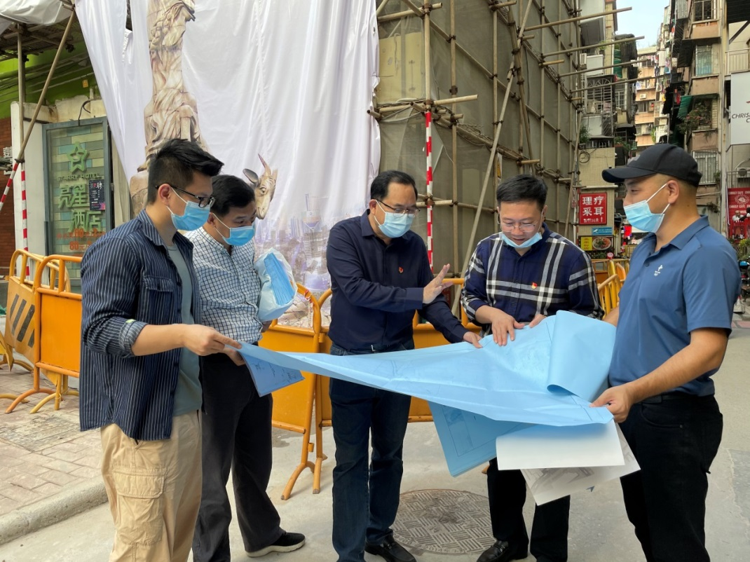 在項(xiàng)目現(xiàn)場(chǎng),黎樹禧黨委委員聽取了總包部結(jié)合北京路步行街環(huán)境改造二期設(shè)計(jì)工作開展“我為群眾辦實(shí)事”實(shí)踐活動(dòng)的情況匯報(bào),詳細(xì)了解項(xiàng)目進(jìn)展情況,與項(xiàng)目成員深入探討了項(xiàng)目設(shè)計(jì)方案。針對(duì)民生需要、街區(qū)特點(diǎn)和項(xiàng)目進(jìn)展情況,黎樹禧黨委委員提出了改造策劃方案的指導(dǎo)意見,在項(xiàng)目改造實(shí)施過程中嚴(yán)防大拆大建,做好植被保護(hù),將歷史文化保護(hù)放在第一位,保護(hù)和傳承歷史文化遺產(chǎn),最大限度保留老城區(qū)具有特色的格局,延續(xù)城市的歷史文脈和特色風(fēng)貌。同時(shí),黎樹禧黨委委員強(qiáng)調(diào)項(xiàng)目成員要與周邊社區(qū)居民認(rèn)真交流,聽取群眾意見和建議,把群眾滿意作為檢驗(yàn)實(shí)踐活動(dòng)成效的標(biāo)準(zhǔn),切實(shí)做到為群眾辦實(shí)事、辦好事、辦身邊事。