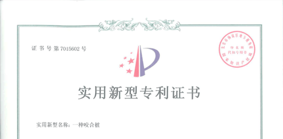2018年2月23日,公司再次成功授權實用新型專利《一種咬合樁》?!兑环N咬合樁》專利是通過在咬合樁的咬合部位設置一條垂直方向的管道并灌入止水材料,從而改善咬合質量的一種技術。 施工控制是施...
