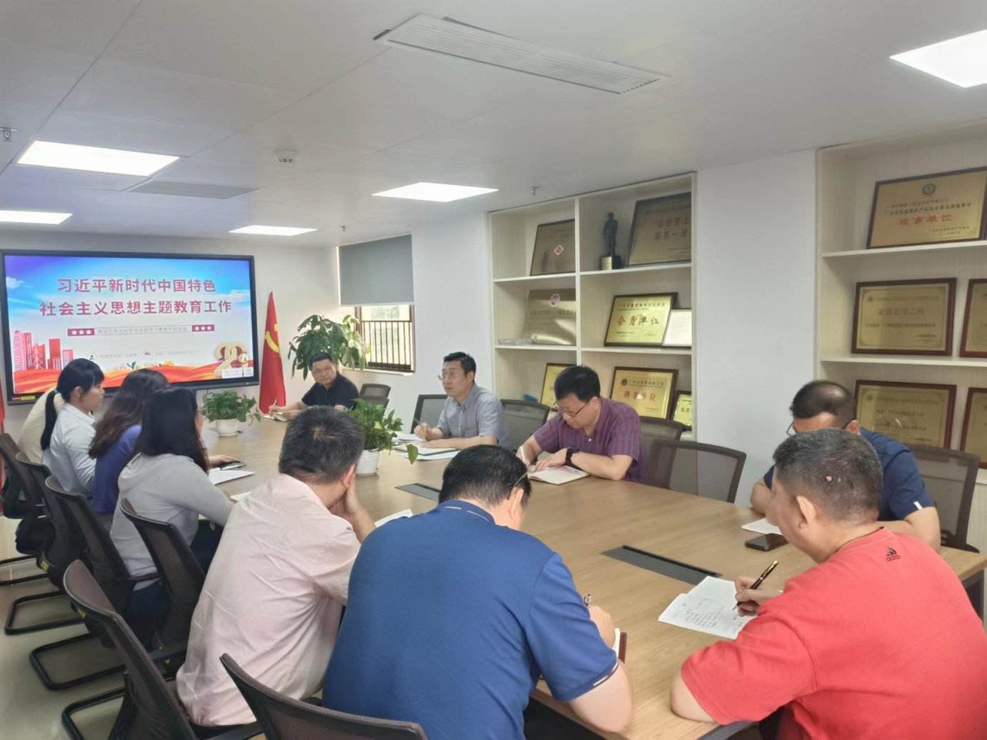 根據(jù)院扎實推動主題教育在院基層黨支部走深走實的要求,呂連恩同志帶領(lǐng)全體黨員認(rèn)真學(xué)習(xí)院《關(guān)于深入開展學(xué)習(xí)貫徹習(xí)近平新時代中國特色社會主義思想主題教育的實施方案》,并且講授《習(xí)近平新時代中國特色社會主義思想主題教育工作》專題黨課。會議強調(diào),公司黨支部必須牢牢把握主題教育中“學(xué)思想、強黨性、重實踐、建新功”的總要求,采取多種形式包括學(xué)習(xí)強國、廉潔廣州等自學(xué)和集中學(xué)習(xí)結(jié)合起來,推動理論學(xué)習(xí)入腦入心;把主題教育和實際工作、本職崗位聯(lián)合起來,弘揚擔(dān)當(dāng)實干、勇于作為精神,推動主題教育走深走實。
