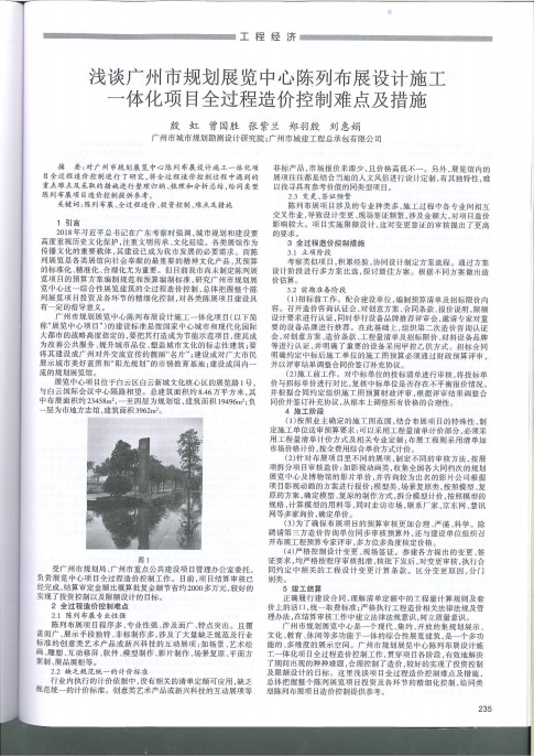 《淺談廣州市規(guī)劃展覽中心陳列布展設(shè)計施工一體化項目全過程造價控制難點及措施》論文摘要