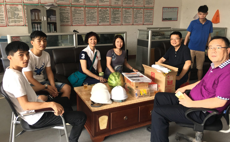2017年6月、7月,公司領(lǐng)導(dǎo)班子及工會(huì)全體成員分別到廣州二沙島文化娛樂中心、增城掛綠新城、梅州嘉應(yīng)醫(yī)院住院大樓、廣州宇蒙實(shí)業(yè)有限公司廠房、番禺洲山大廈、云浮市糧油儲(chǔ)備直屬庫(kù)工程項(xiàng)目部,親切走訪慰問看望工程一線生產(chǎn)管理人員,并為他們送去防暑降溫藥品、清涼飲料。